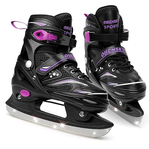 Adjustable Ice Skates for Kids Toddler Ice Hockey Skates for Girls and Boys Youth Ice Skating Shoes for Outdoor and Rink 4 Sizes Adjustments Gift for Christmas Large 4 7 US Purple Very well made.