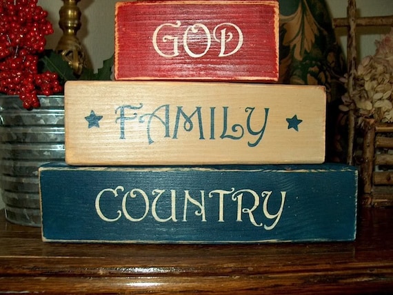 Primitive Shelf Blocks GOD FAMILY COUNTRY Americana Home Decor Sign Folk Art Stars Etsy UK Very well made.