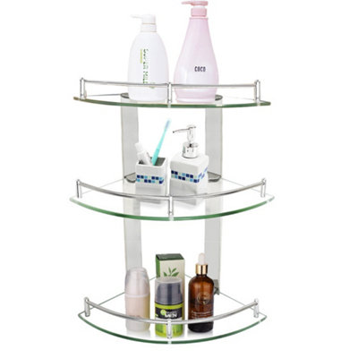 3 Tiers Unit Double Wall Corner Bathroom Shelves Glass Bathroom Corner Shelves Glass Bathroom Shelves Corner Shelf Made in China Very well made.