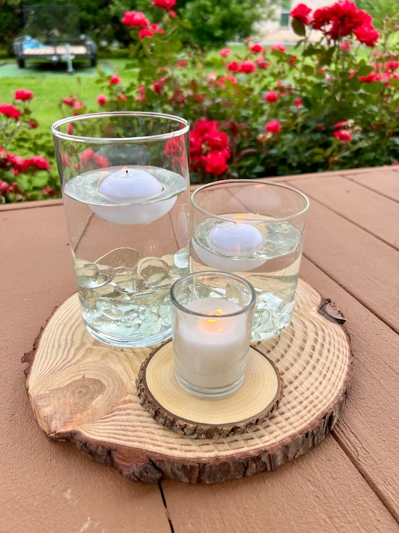 Wedding Centerpiece Candle Centerpiece Clear Vase Floating Candles Wood Slice Centerpiece With Vases Candles Rustic Wedding Decor Etsy Very well made.