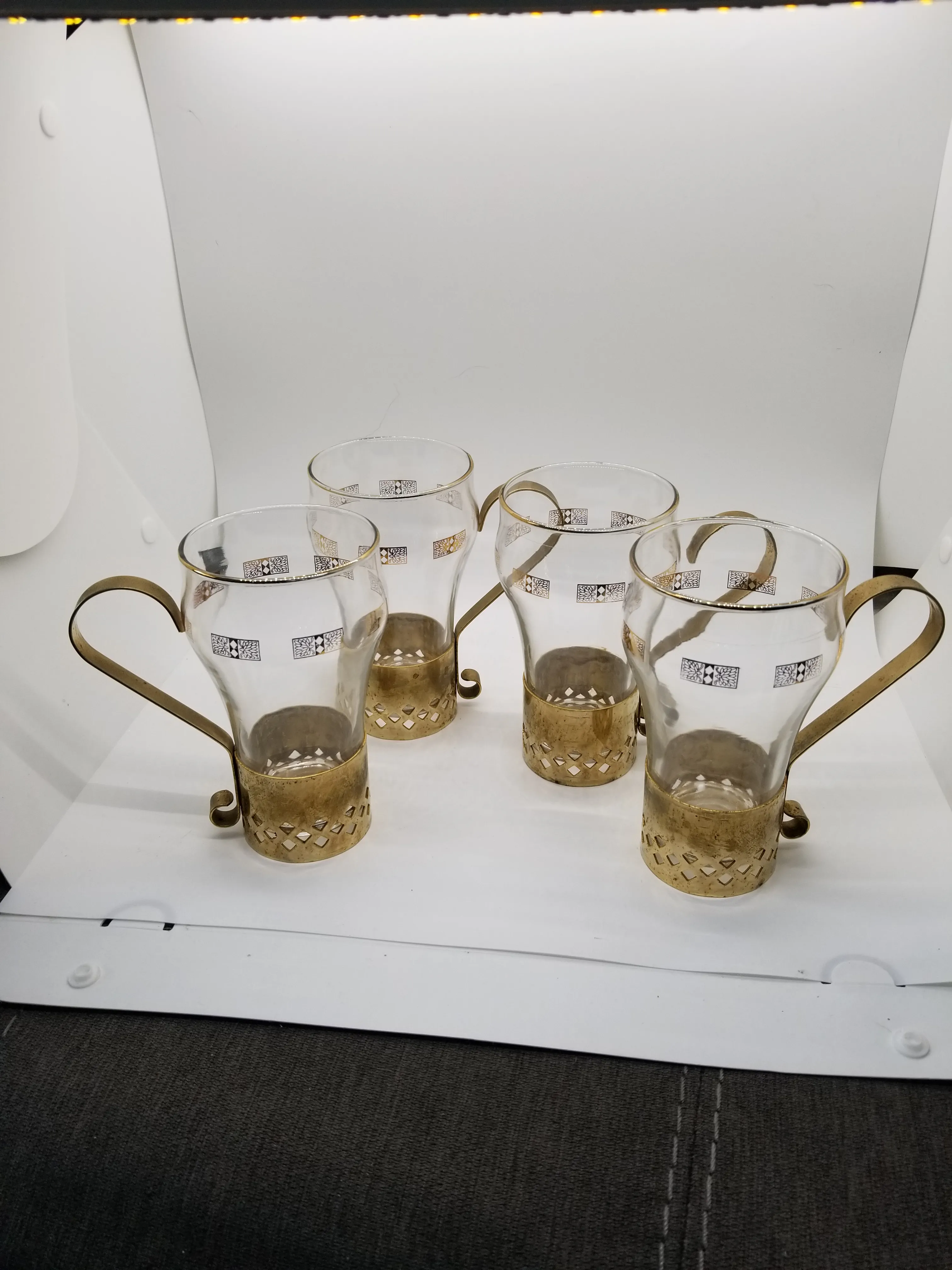 Glass coffee mugs with store metal holders Very well made.