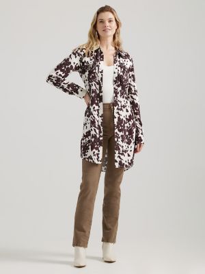 Wrangler Women s Brown Cow Print Shirt Dress S Very well made.
