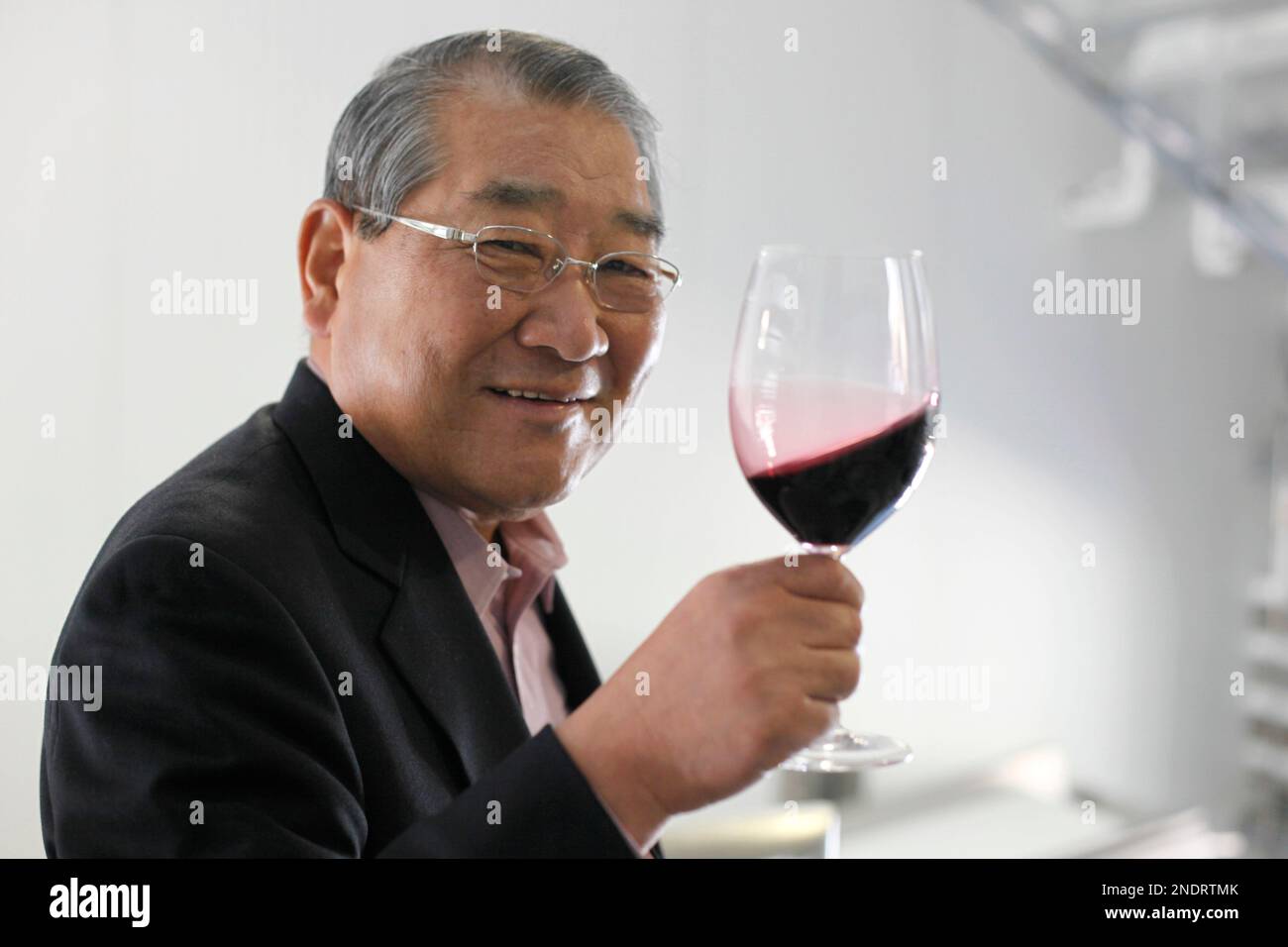 Kenzo Tsujimoto poses with a glass of wine inside a cave at Kenzo Estate winery in Napa Calif. Tuesday April 6 2010. Tsujimoto chairman of Japan s Capcom Group creators of popular games Very well made.