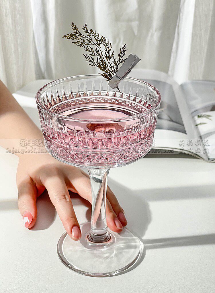 Imported European Style Cocktail Glass Retro Engraved Glass Goblet Bar Mixing Glass Wide Mouth Martini Champagne Glass Very well made.