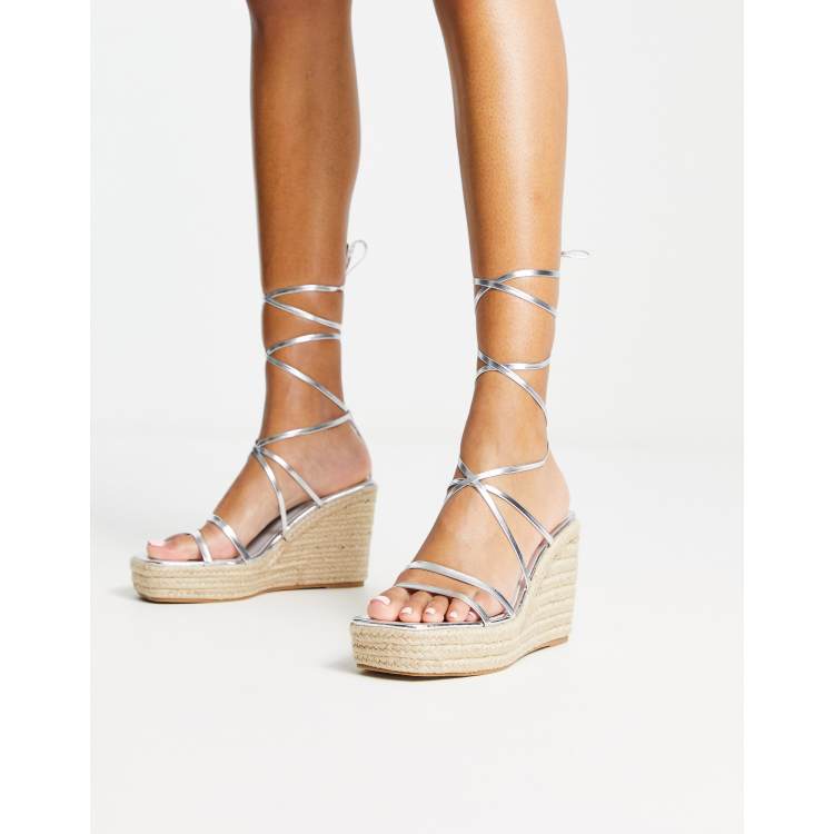 Espadrilles Compens es En Similicuir Argent Strass Very well made.