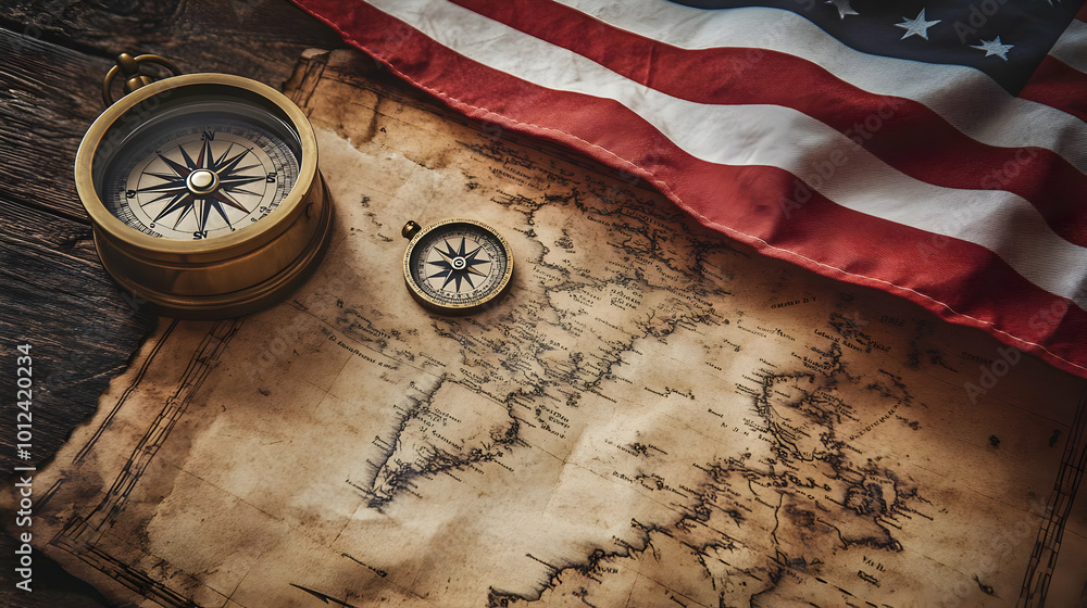 Poster Print Ancient Compass and Map Discovering the World 40x22.2 cm Very well made.
