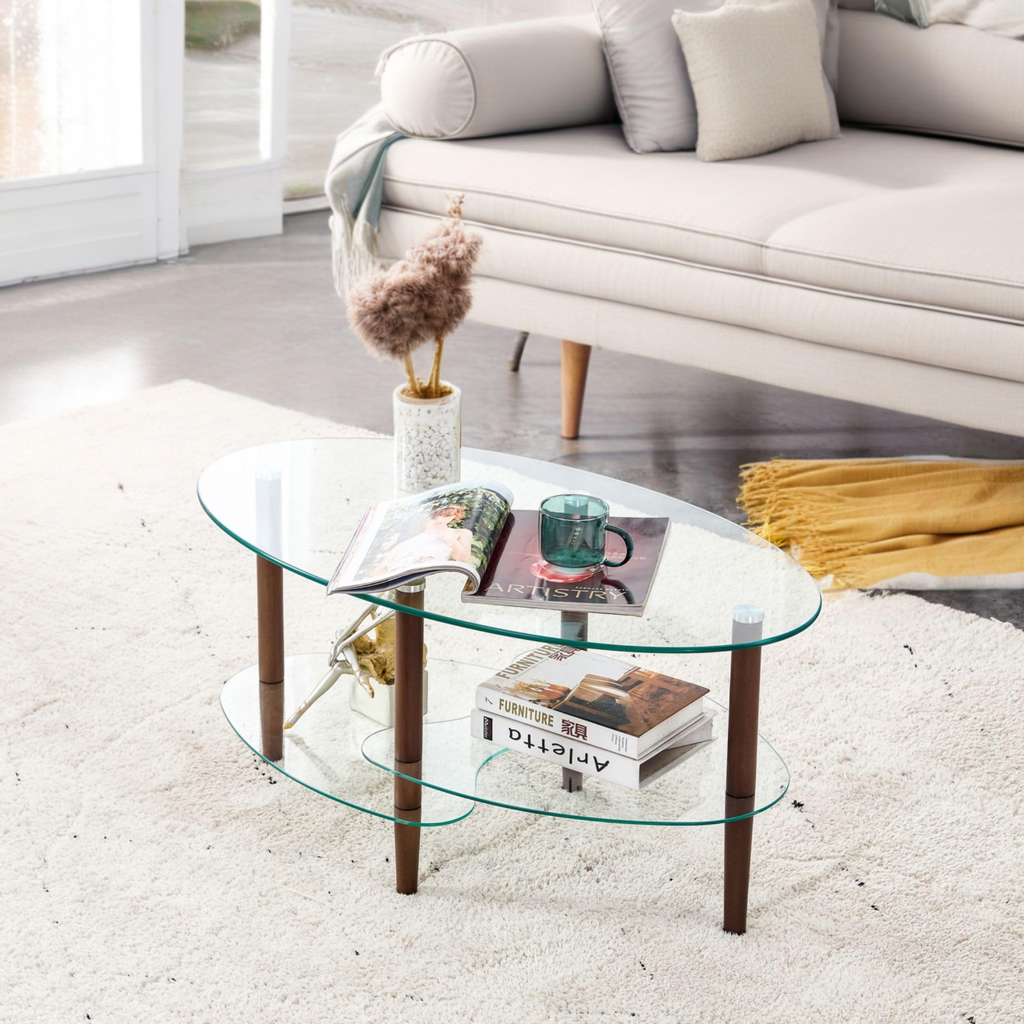 Amazon NicBex Oval Coffee Table Transparent Glass Coffee Table Modern Table in Living Room Oak Wood Leg Tea Table 3 Layer Center Table Brown Home Kitchen Very well made.