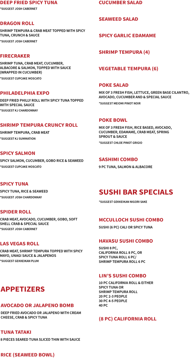 Lin s Little China Restaurant Inc Sushi Menu Lake Havasu City Very well made.