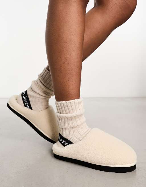 Calvin Klein Jeans Chaussons style sabots en imitation peau de mouton Cr me Very well made.