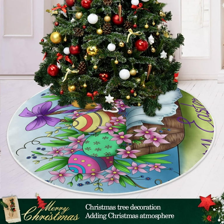 Wellsay Easter Wicker Basket Tree Skirts for Festive Holiday Party Decoration Colored Eggs Christmas Tree Mat Indoor Outdoor Tree Cover Skirt Ornaments 36inch for Home Office Walmart Very well made.