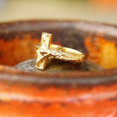 Vintage 14K Yellow Crucifix Ring Embossed Gold Cross Ring Wrap Good s Vintage Philadelphia PA Very well made.