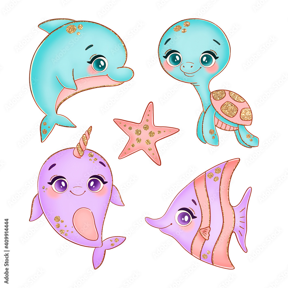 Vector Cartoon Sea Ocean Animals Set 2307511915 Shutterstock Very well made.