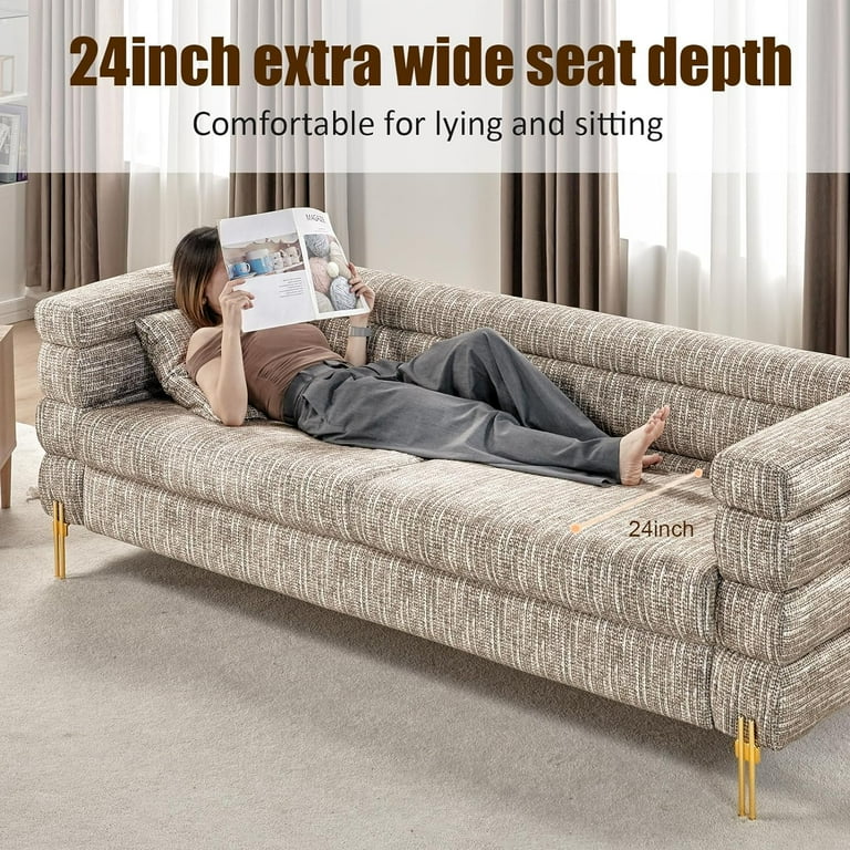 Neche 3 Seater 193cm Couch Teddy Velvet Sleeper Sofa with Extra Deep Seats Coffee Very well made.