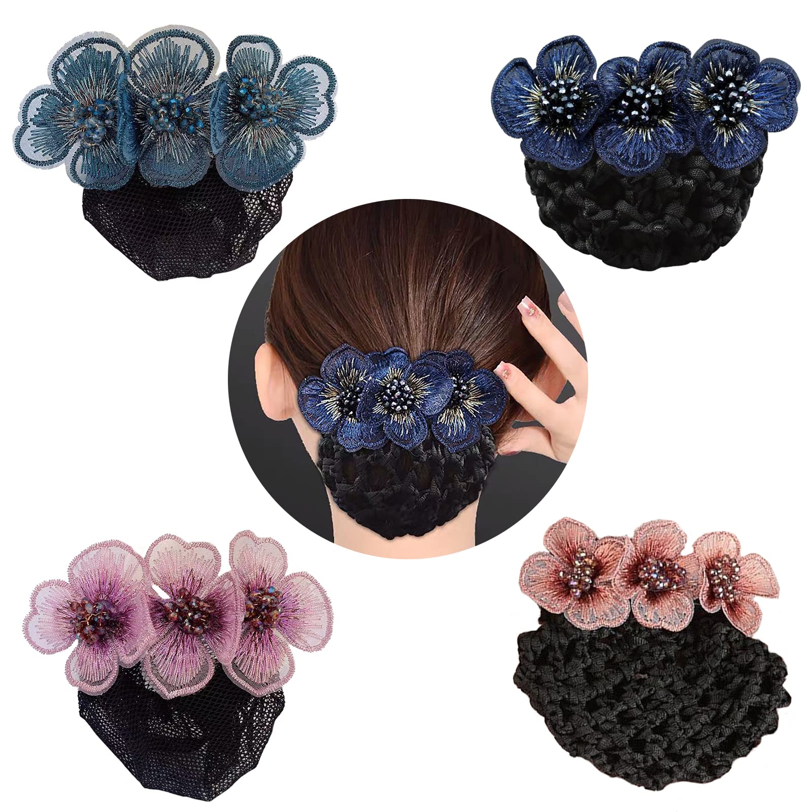 Women Hair Bun Cover Net Snood Hairnet Bowknot Decor Barrette Hair Clip Bow Flower Hair Accessories Very well made.