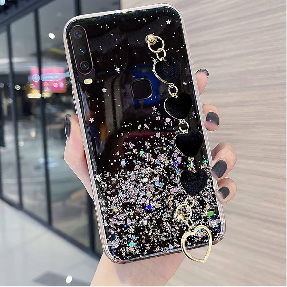 KC Back Cover for Vivo Y12 Vivo Y15 Non Moving Dry Fixed Glitter Luxury Shiny Love Hearts Wrist Bracelet Chain Holder Soft Silicone Case Black Amazon.in Electronics Very well made.