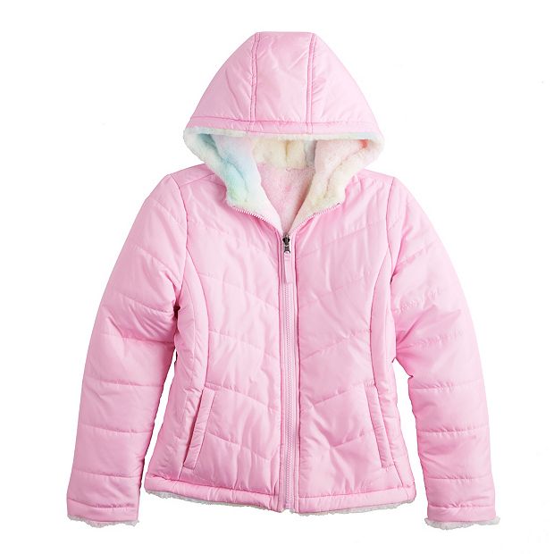 Girls 4 16 SO Reversible Faux Fur Quilted Puffer Jacket Very well made.