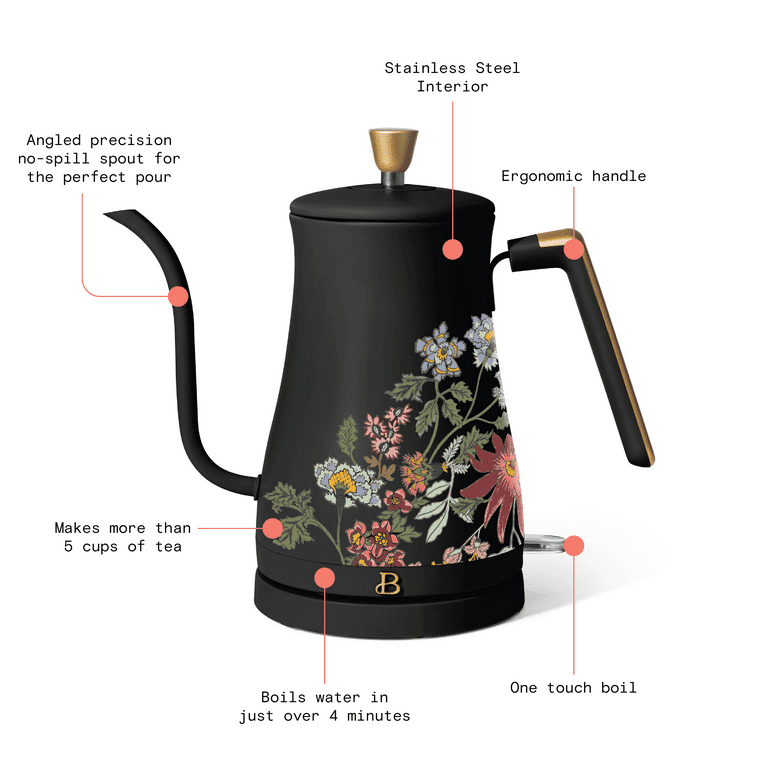 Beautiful 1 Liter Electric Gooseneck Kettle 1200 W Wildflower by Drew Barrymore Black Walmart Very well made.