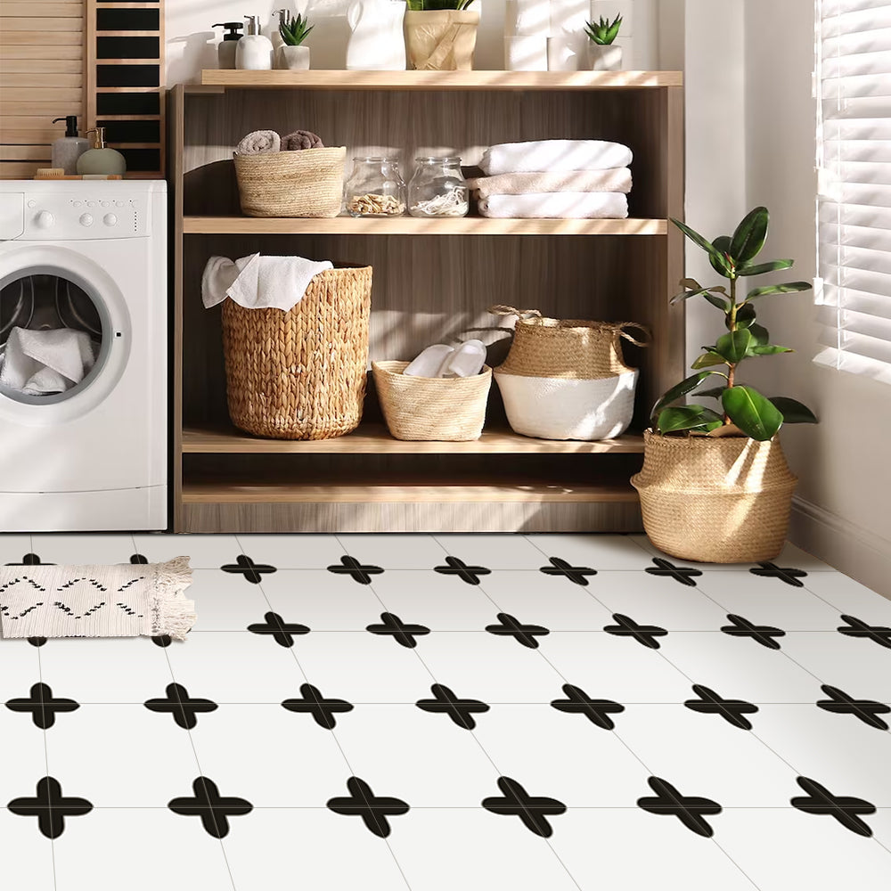 White and Black Square Peel and Stick Vinyl Floor Tile Sticker Commomy Very well made.