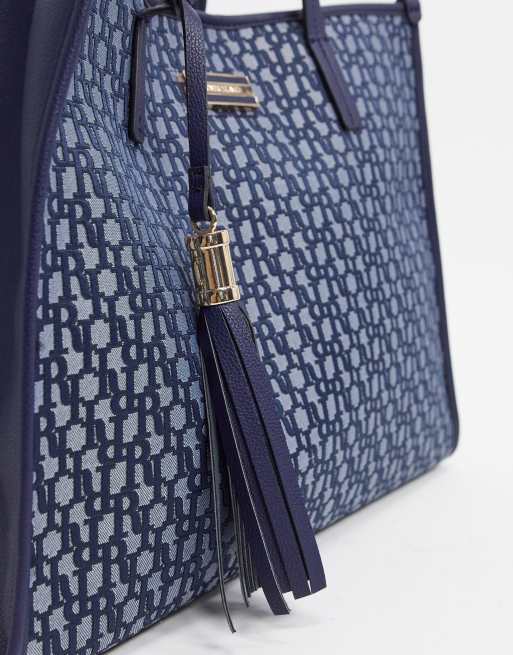 Bolso shopper azul marino con dise o cuadrado y logo de monograma Very well made.