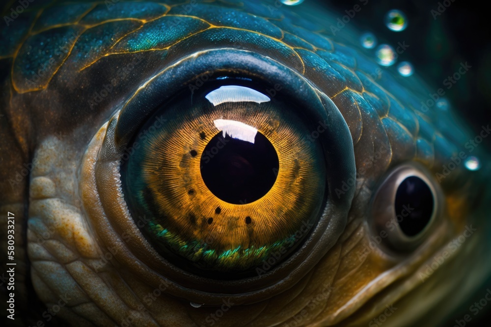 Photo Art Print close up of a fish eye. Generative AI AkuAku Very well made.