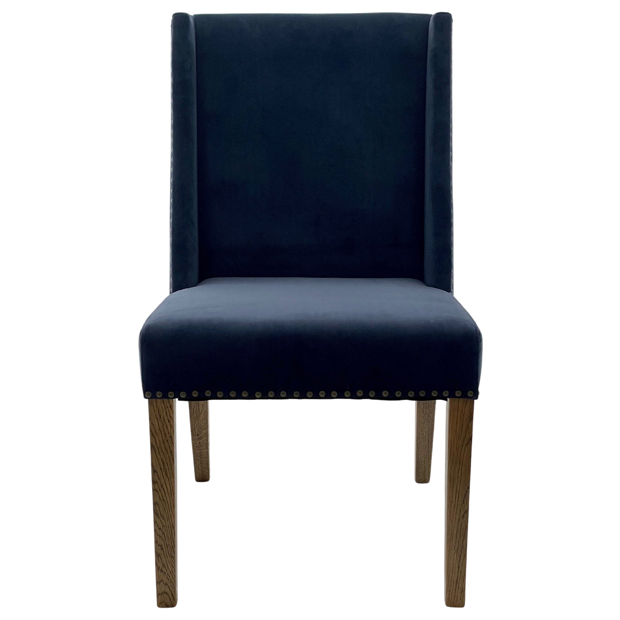 2x Blue Velvet Tufted Dining Chairs with Wood Legs and Stud Trim Very well made.