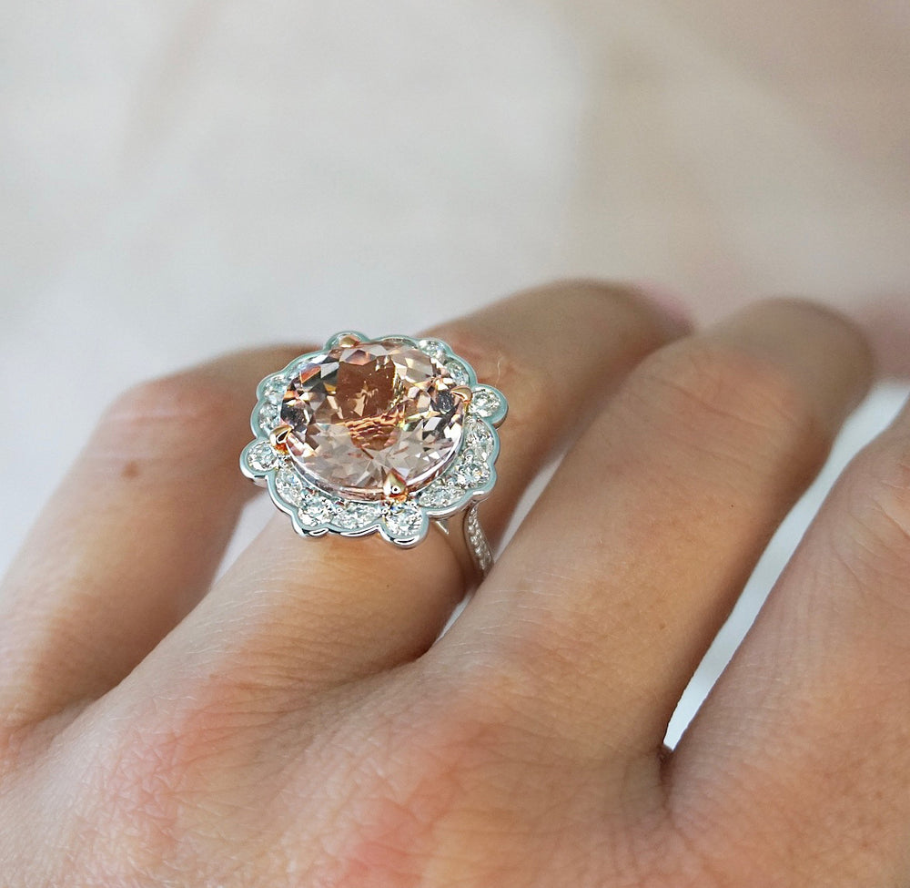 Florence Morganite Diamond Halo Cocktail Ring York Jewellers AU Very well made.