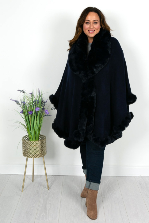 Yumi Black Cape With Luxe Fur Trim And Lining Very well made.