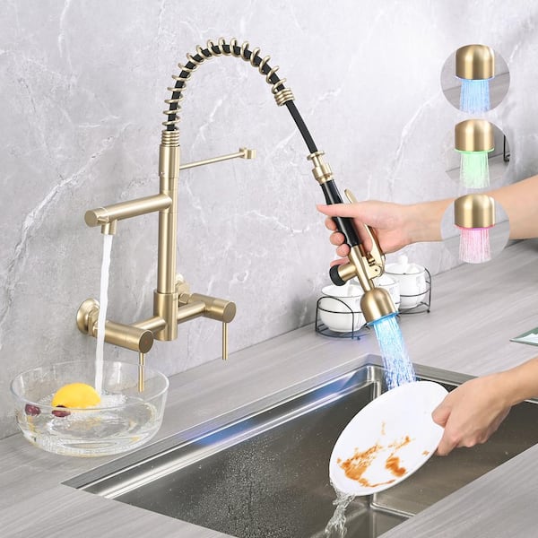 YASINU Double Handle Pull Down Sprayer Kitchen Faucet with High Pressure LED 8 in. Kitchen Sink Faucet in Brushed Golden YNM40506BG The Home Depot Very well made.