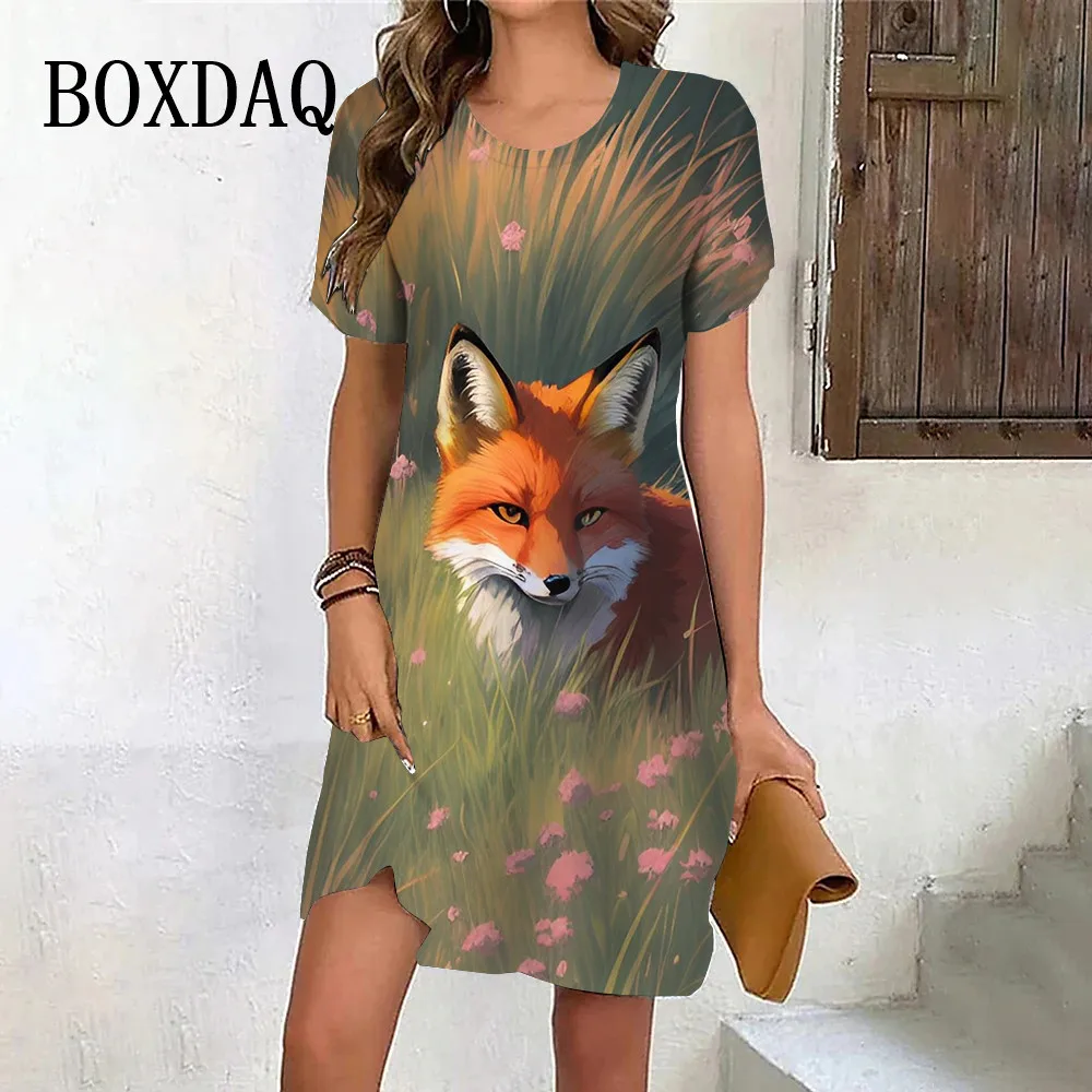 Vintage Fox Pattern Print Dresses Women Oversized Clothing Summer Female Short Sleeve Mini Dress Casual Funny Animals Fox Dress AliExpress 200000345 Very well made.