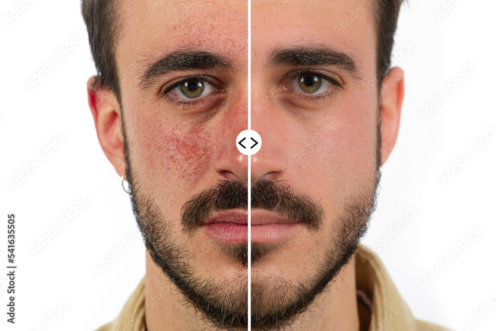 Man face with red skin rosacea before and after couperose treatment Stock Adobe Stock Very well made.