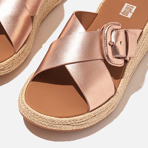 F MODE ESPADRILLE BUCKLE LEATHER FLATFORM BACK STRAP SANDALS FitFlop Thailand Very well made.