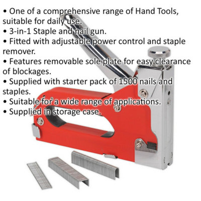 Heavy Duty 3 Way Staple Nail Gun Stapler Upholstery Wood With 1500 Staples New Very well made.
