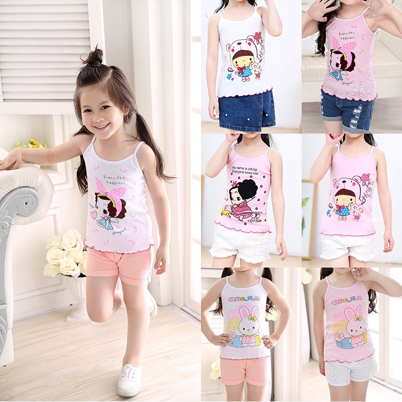 READY STOCK T shirt Girl shirt for Girls Baby Kids Sleeveless Tops 100 Cotton Top Tshirt Singlet cute cartoon. Shopee Malaysia Very well made.
