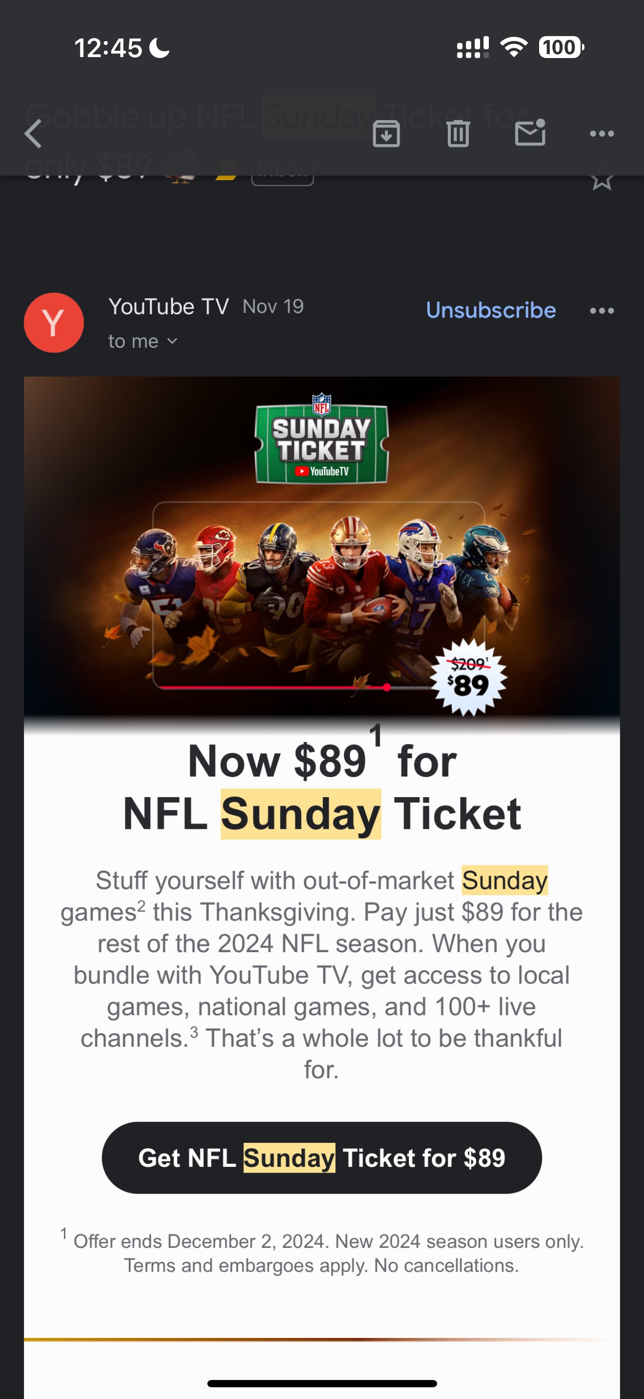 Jake Thompson on X YouTube TV and NFL Sunday ticket are out of their damn minds. They offered it for 89 a couple weeks ago and now are offering it for less Very well made.