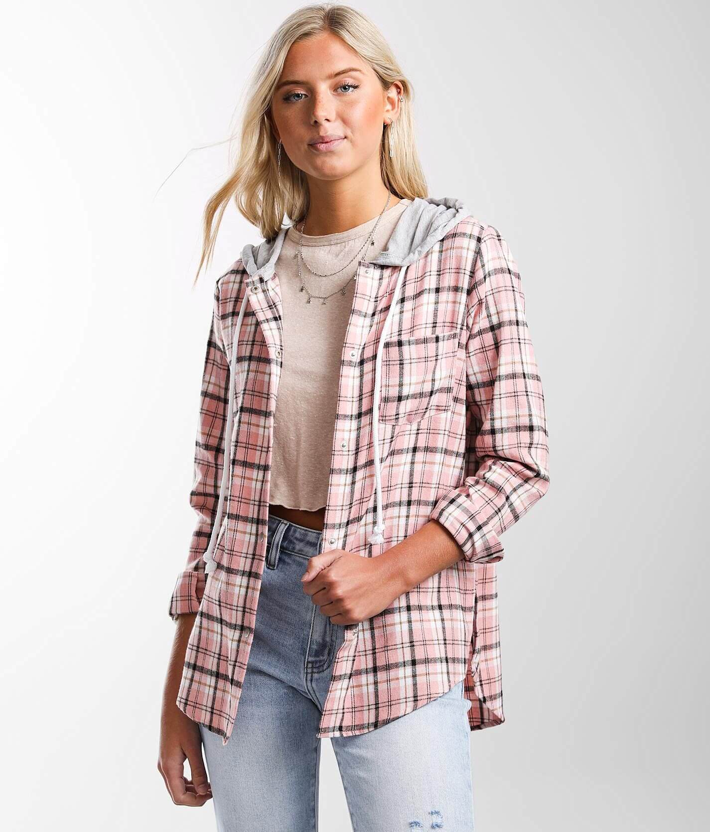 BKE Hooded Flannel Plaid Shirt Women s Shirts Blouses in Pink Multi Buckle Very well made.