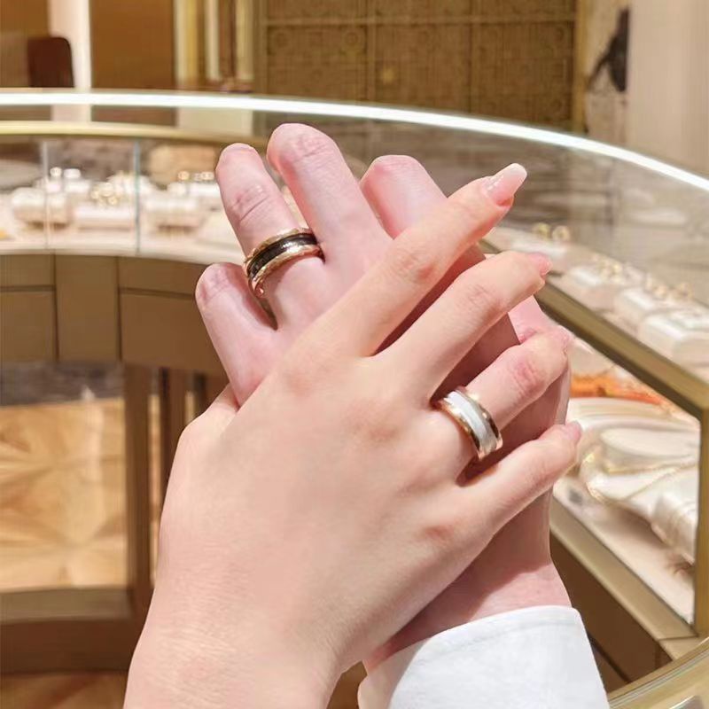 Anillo Bvlgari Doble De Cer mica Negra Primavera 18K Oro Rosa Boda Very well made.