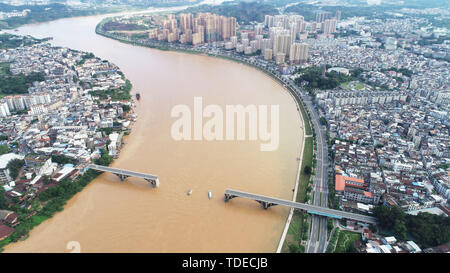 Heyuan China. 14th June 2019. Aerial photo taken on June 14 2019 shows the collapsed Dongjiang Bridge in Heyuan south China s Guangdong Province. Two people are reported missing and one rescued after Very well made.