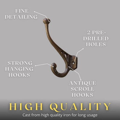 6pc Strong Antique Rustic Brown Cast Iron Wall Mounted Scroll Coat Hooks Home Storage Hooks Very well made.