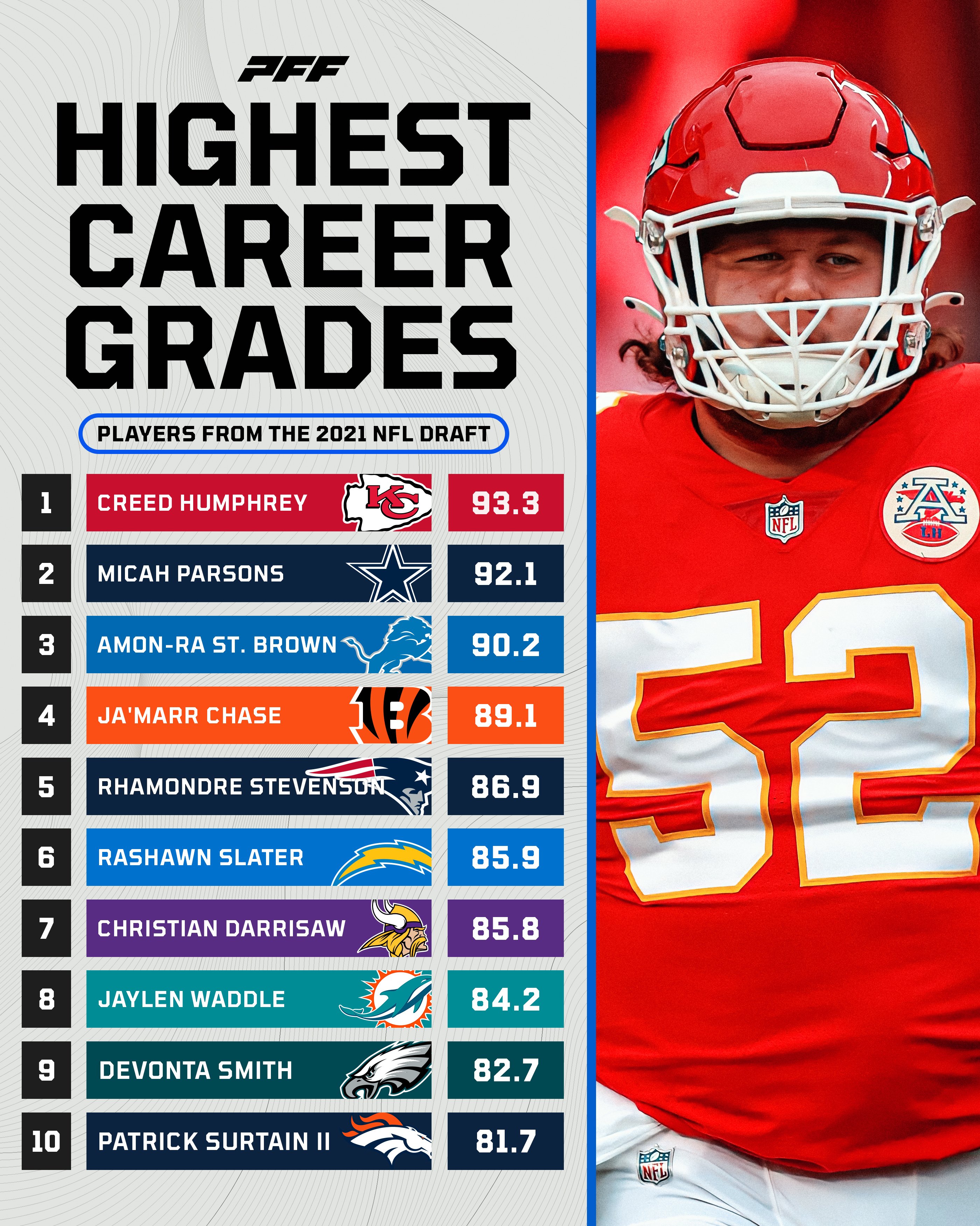 PFF on X Highest career grades among the 2021 NFL Draft class https t OjaMRBq4zQ X Very well made.