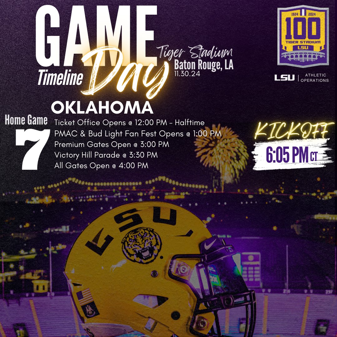 LSU Game Operations on X On Saturday LSUfootball will host OU Football for their final home game in Tiger Stadium of the 2024 season. Below you can review the fan experience timeline Kick Very well made.