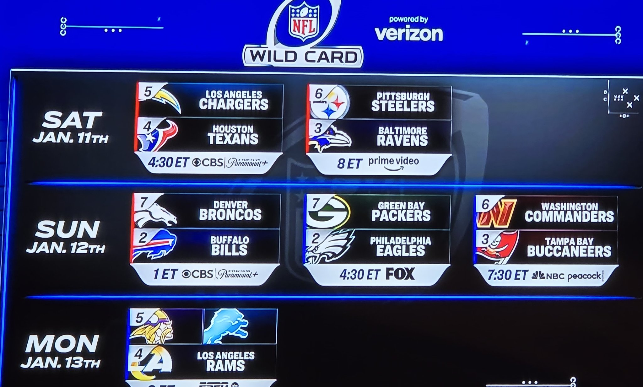 Just Keith on X NFL playoff TV schedule and times for wildcard weekend. https t rIUuBHENVB X Very well made.