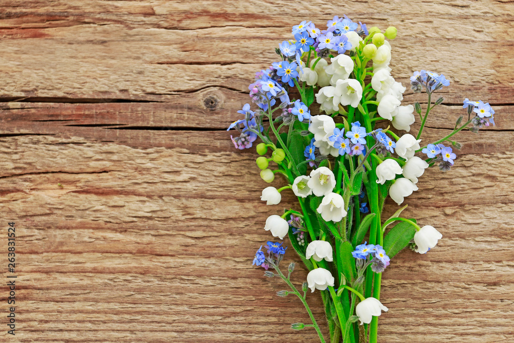 Bouquet of forget me not and lily of the valley flowers on wooden background Stock Adobe Stock Very well made.