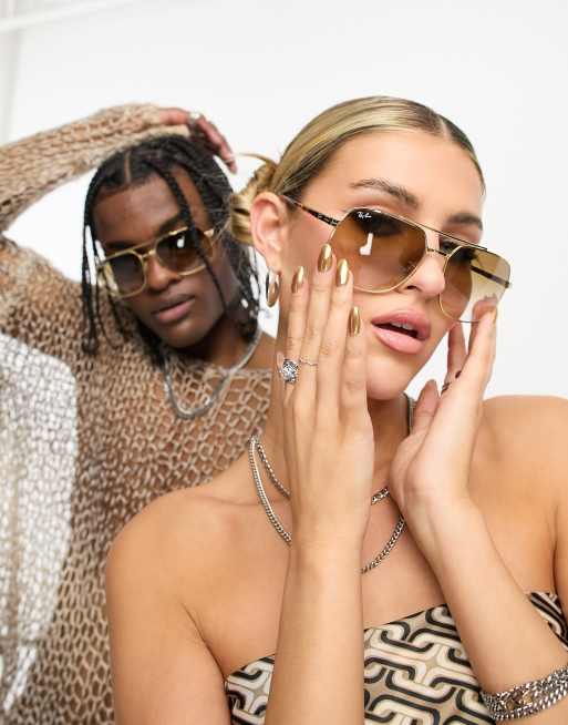 Gafas de sol marrones y doradas cuadradas de estilo a os 70 de Ray Very well made.