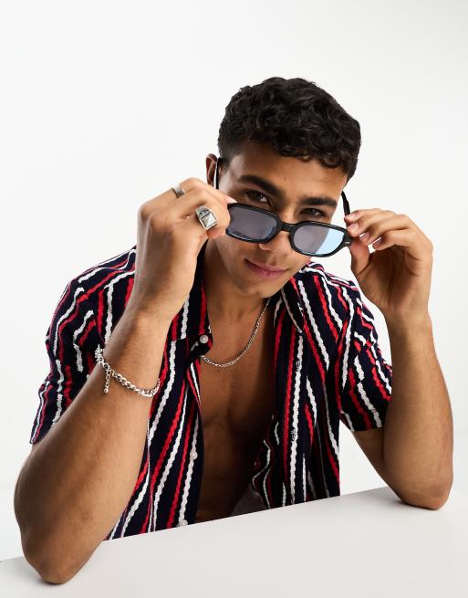 Gafas de sol negras cuadradas de estilo retro con lentes azules de Very well made.
