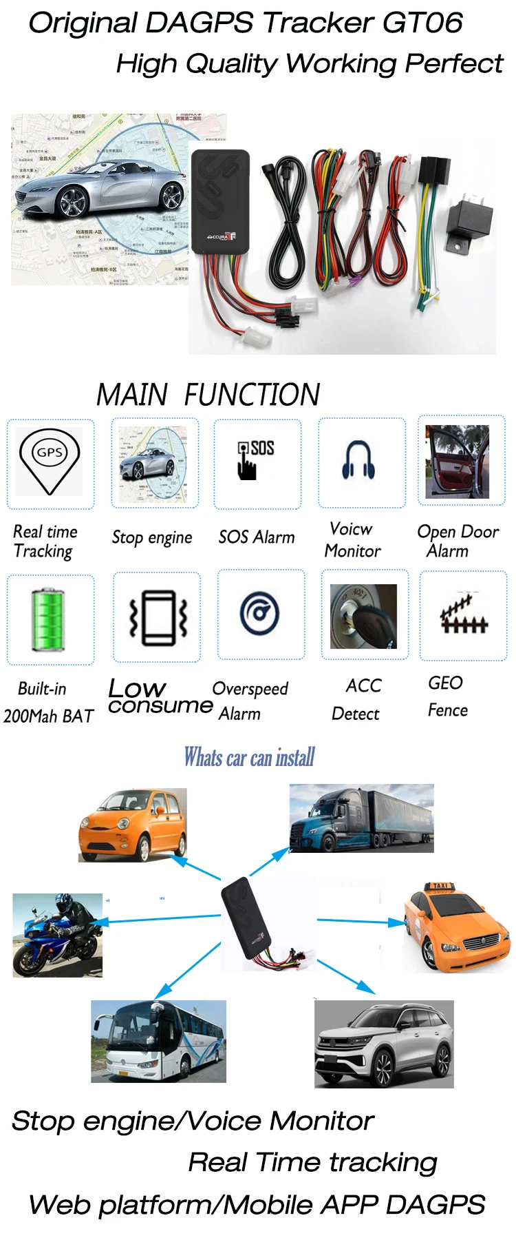 High Quality DAGPS Accurate GPS tracker Gt06 Gt06n with SOS Button Cut off Engine Tk100 Gps tracker Alibaba Very well made.