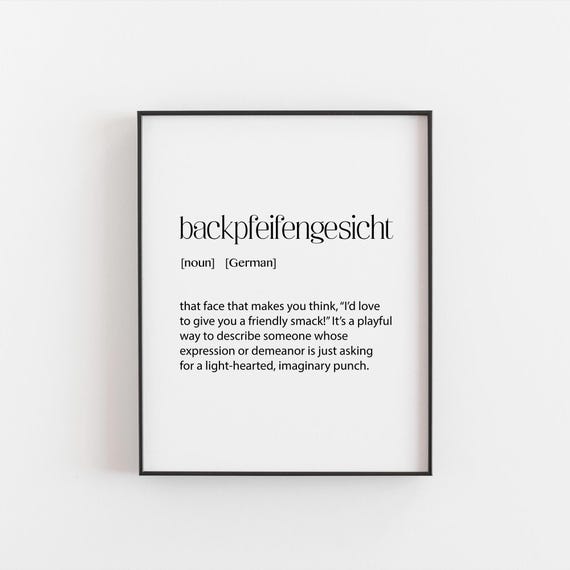 Backpfeifengesicht Definition Print Funny German Wall Art Humorous Quote Playful Decor Unique Gift Lighthearted Typography Germany Very well made.