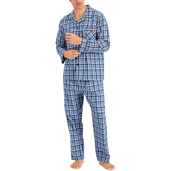 Hanes Men s Tall Size Long Sleeve Plain Weave Pajama Set Blue Check Small at Amazon Men s Clothing store Very well made.