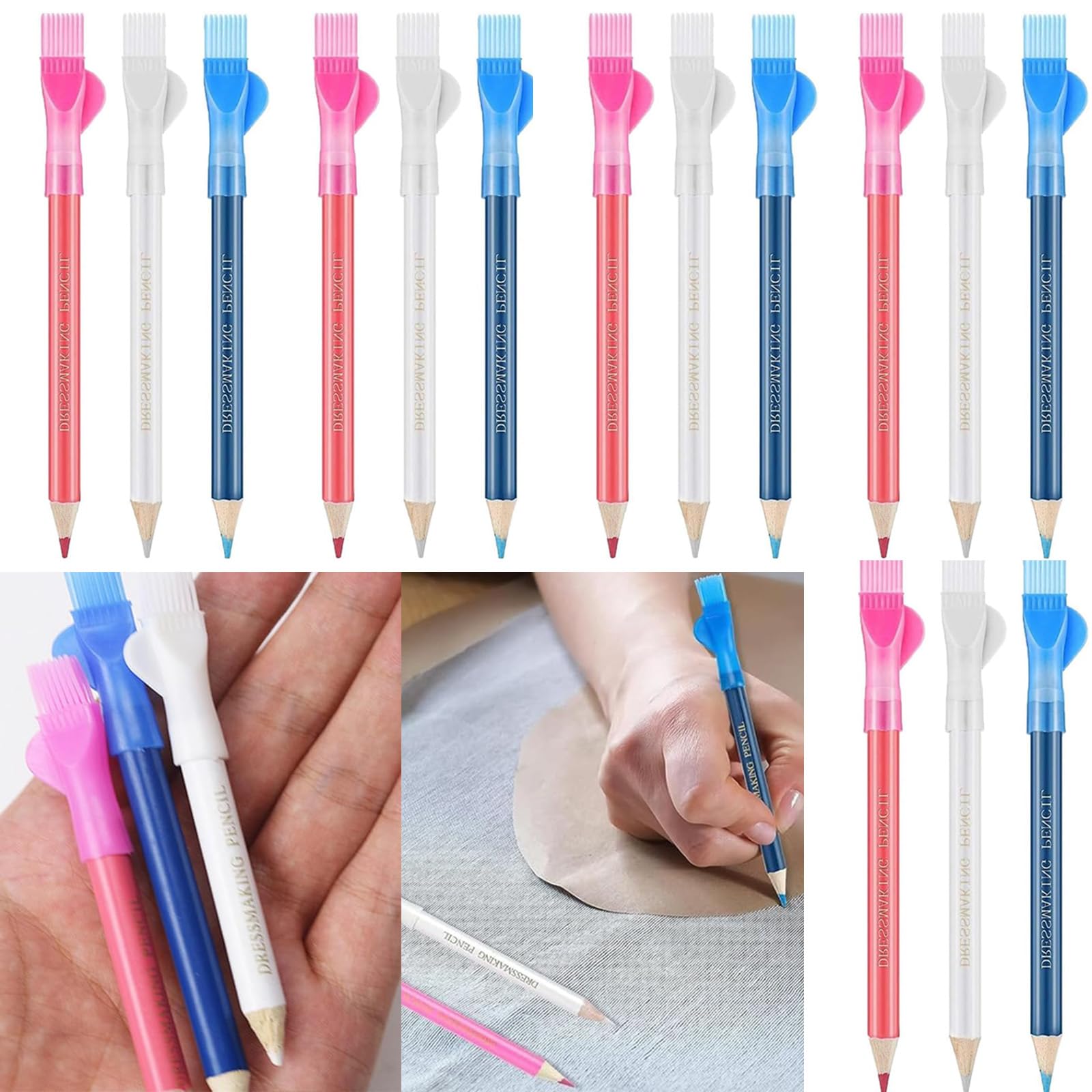 ZYPHONX 15 PCS Tailors Chalk Pencils Water Soluble Sewing Chalk with Brush Cap Fabric Marking Pencil with Cover Brush Dressmaker Marker and Tracing Tools Blue Red White Amazon Stationery Office ... Very well made.