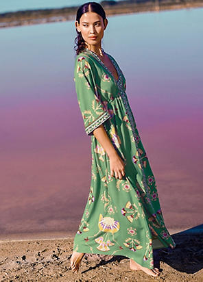 Monsoon Jasmine Embroidered Kaftan Maxi Dress Curvissa Very well made.