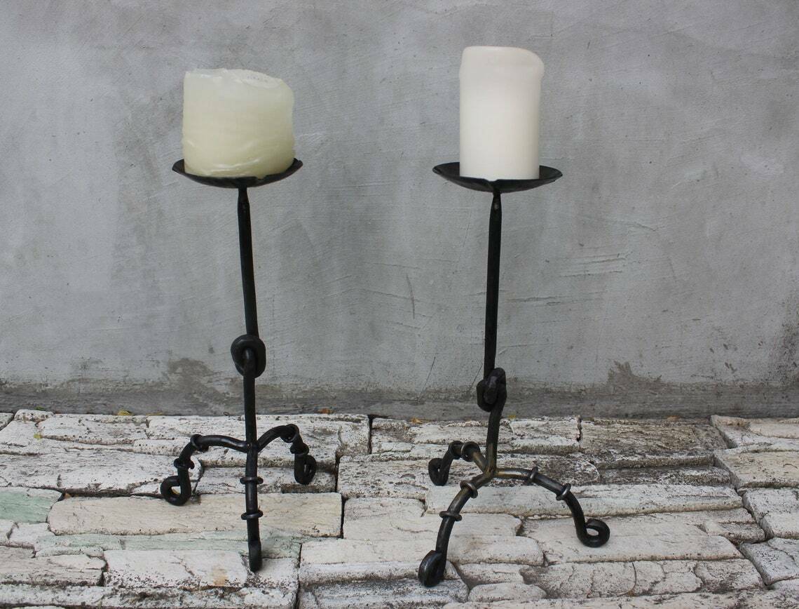 Two Side Large Candlesticks Floor Wrought Iron Candle Holders Fireplace Tall Candle Light 20th Century Antique Vinterior Very well made.